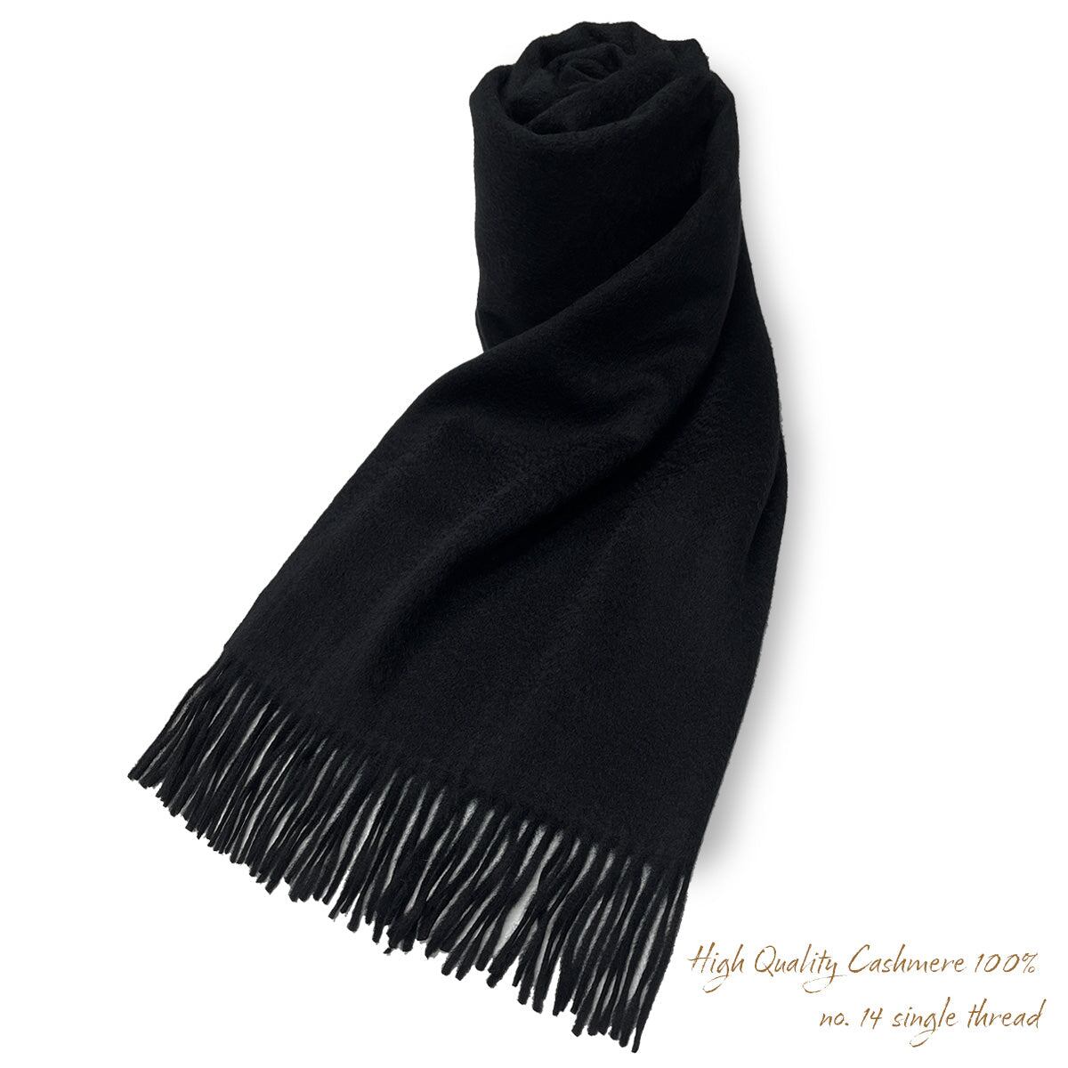 100% High Quality プレーン大判ストール Black 無地 ブラック 70cm×205cm